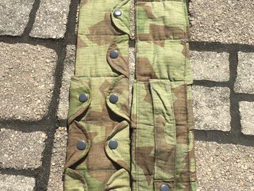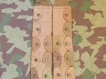 Late war issue. Made from various tan/oliv colored linen, cotton and rayon fabrics. PRYM 6 snaps, 100% cotton thread and original type markings.